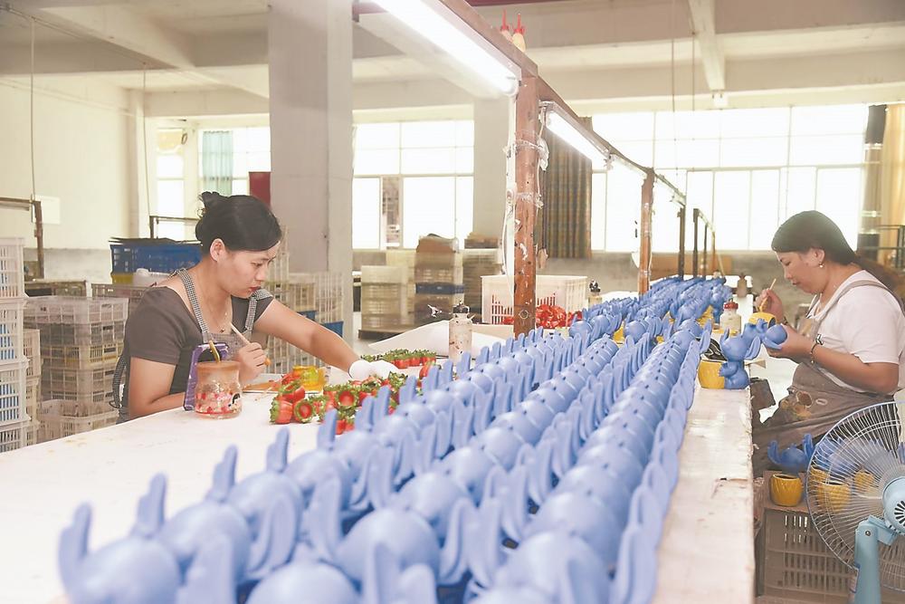 生產(chǎn)車間里,工人在趕制陶瓷訂單 林婉清 攝