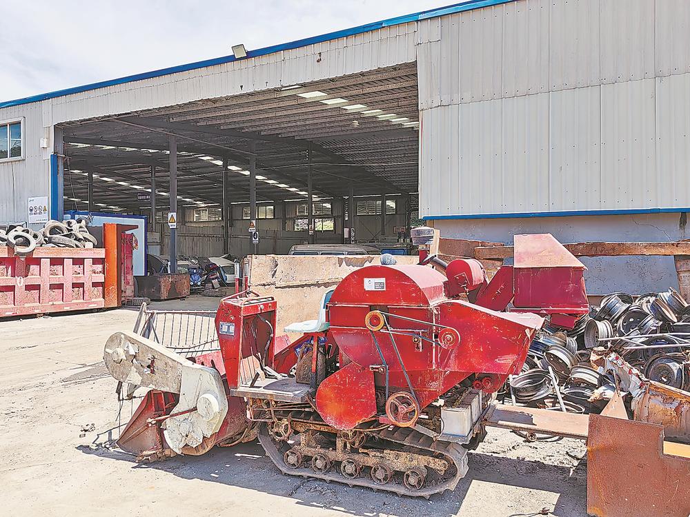 三明市三元區(qū)恒德順再生資源有限公司內(nèi)一臺將被拆解的廢舊履帶式收割機 記者 賴昊拓 攝