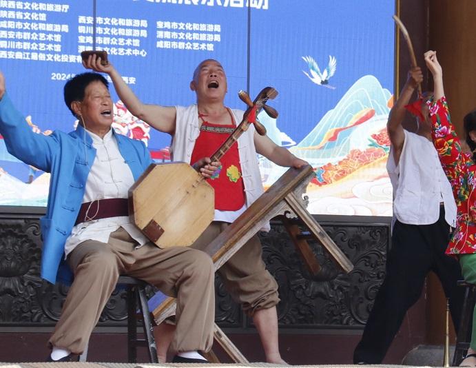 6月28日,西安市夏日廣場群眾文化活動現(xiàn)場,精彩的秦腔表演與觀眾見面
