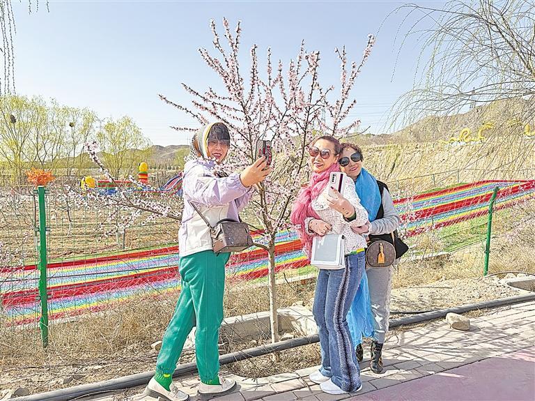 石嘴山市大武口區(qū)龍泉村的桃花節(jié)吸引游客前來(lái)“打卡”