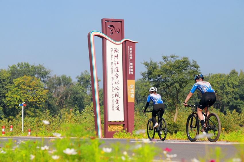 騎行愛好者在江淮分水嶺風景道定遠段騎行(滁州市文旅局供圖)