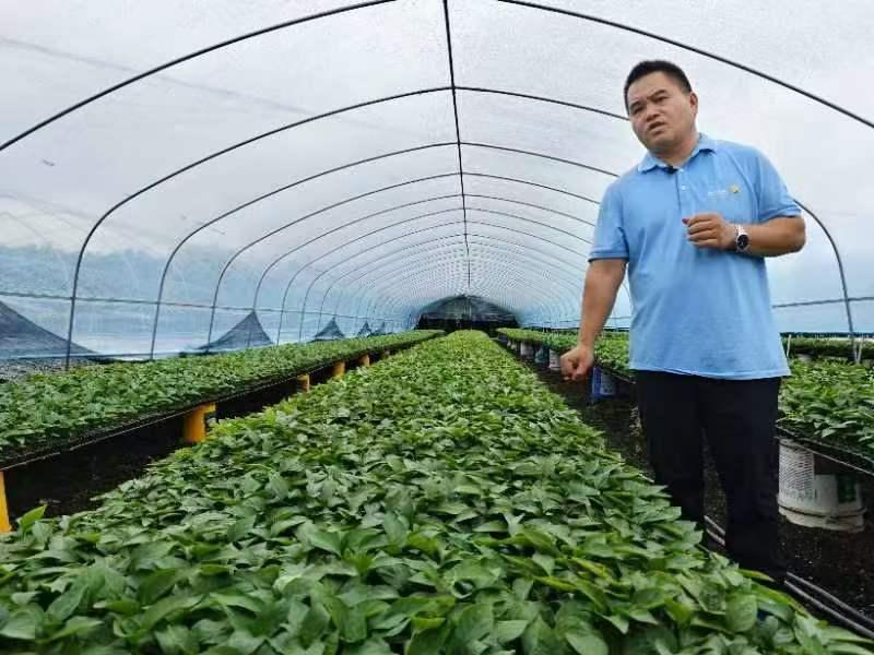 2017年,在外打拼多年的黃義叁決定返鄉(xiāng)創(chuàng)業(yè),自此投身于家鄉(xiāng)的甜椒產(chǎn)業(yè)。憑借多年在外的經(jīng)驗(yàn)積累,黃義叁主動(dòng)引進(jìn)優(yōu)良品種,積極整合資源、技術(shù)、銷路,逐漸扭轉(zhuǎn)新圩村甜椒產(chǎn)業(yè)缺管理、缺技術(shù)、缺銷路的情況。創(chuàng)業(yè)走向正軌后,黃義叁不忘向村民分享種植經(jīng)驗(yàn)、提供技術(shù)指導(dǎo)。
