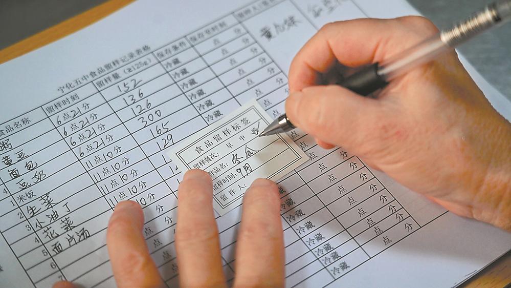寧化五中食品留樣記錄(寧化縣教育局供圖)