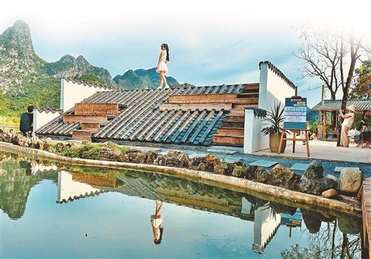 從靜謐垂釣地到熱門網(wǎng)紅打卡點(diǎn),山鏡小院巧妙融合桂林山水意境,變身別具一格的屋頂休閑區(qū)。這一設(shè)計(jì)不僅保留了鄉(xiāng)村的原始韻味,更增添了一抹現(xiàn)代時(shí)尚氣息。屋頂上的獨(dú)特景致,讓這里名聲大噪,網(wǎng)友更是親切地稱其為“上房揭瓦”的趣地。