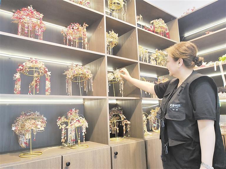 在主街福寧街上,劉莎的影樓內(nèi)外裝修格外別致,櫥窗設(shè)計(jì)明亮而時(shí)尚。21年前,劉莎從新疆來到閩寧鎮(zhèn)創(chuàng)業(yè)開辦了一個(gè)百平方米的影樓,她也親眼見證了閩寧鎮(zhèn)各族移民從“吃飽穿暖”到“要生活品質(zhì)”的嬗變?!斑^去我走村串戶給新娘化妝,能接一單五六百元錢的生意就是大單,現(xiàn)在人們生活越來越好,都來店里化妝,可以選擇做中式或西式等多種造型,接到3000多元的生意很平常?!苯┠辏M(fèi)業(yè)態(tài)不斷向新,激勵(lì)劉莎的影樓也不斷轉(zhuǎn)型升級(jí),她不僅將影樓面積擴(kuò)大至500平方米,招聘了4名固定店員,推出了數(shù)十種的攝影服務(wù),還提供銀川周邊的旅拍?!般y川有的,我們這里也有,最近我打算外出再購(gòu)置一些新的拍攝服裝,群眾消費(fèi)在升級(jí),我的服務(wù)也要升級(jí),要跟得上群眾的需求啊!”劉莎笑呵呵地說。