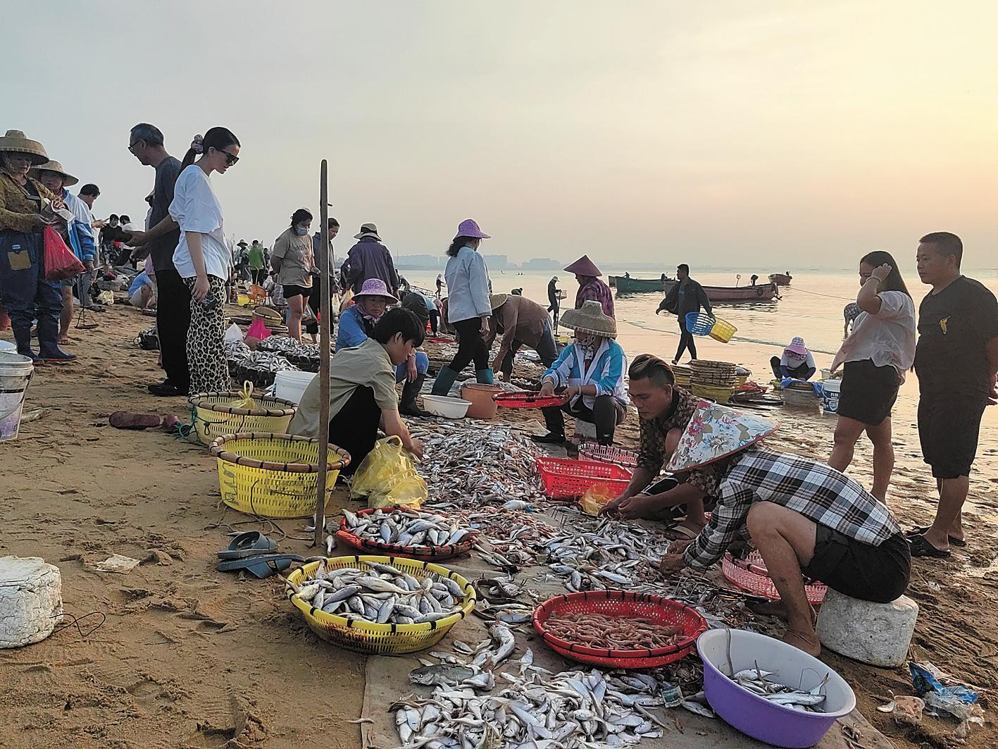 漁民文化成為當地旅游業(yè)的靈魂。每天,不少游客慕名而來,拍攝漁民拉網、裝魚、補網的瞬間,欣賞漁民用粗獷的聲音唱古老的漁歌,聽漁民講述出海捕魚的故事……這些美好瞬間與碧波大海、藍天白云、日落美景匯聚成美麗的圖畫。村里建起了畫家的書酒屋、辛生書屋和音樂咖啡屋,游客在這些場所看書、聽音樂、喝咖啡等,文化氛圍非常濃厚。游客和榮山寮村的漁民還通過直播宣傳榮山寮村的美好風光和愜意感受,吸引更多的游客前來“打卡”、購買海鮮、參加“趕海拾趣”活動。