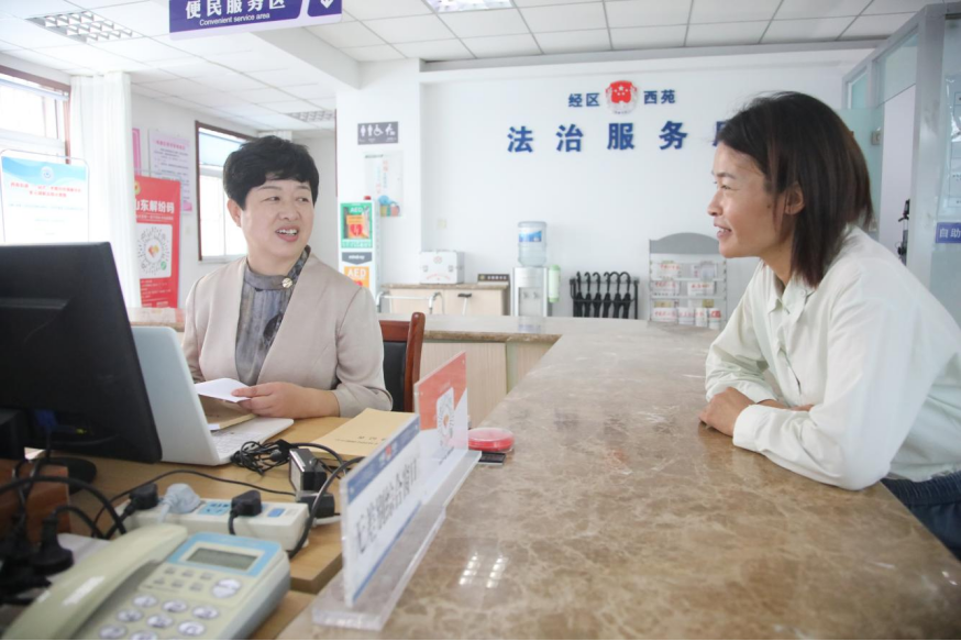 威海經(jīng)區(qū)西苑街道將600多平方米的矛盾糾紛調(diào)解中心分為兩層,“政、訪、調(diào)”銜接是其特色模式,一層將矛調(diào)中心的無差別受理窗口與政務(wù)(便民)服務(wù)中心一體設(shè)置,安排專人登記辦理;二層整合信訪、熱線、網(wǎng)格、綜治、司法、調(diào)解等集中辦公,方便群眾一次性解決問題,“不費(fèi)兩遍事,不跑多趟腿”。