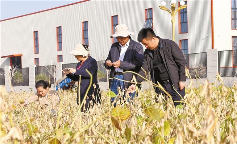 專家在岐山縣對“寶豆10號”百畝大豆種植示范田進行現(xiàn)場實收測產(chǎn)(資料照片)受訪者供圖