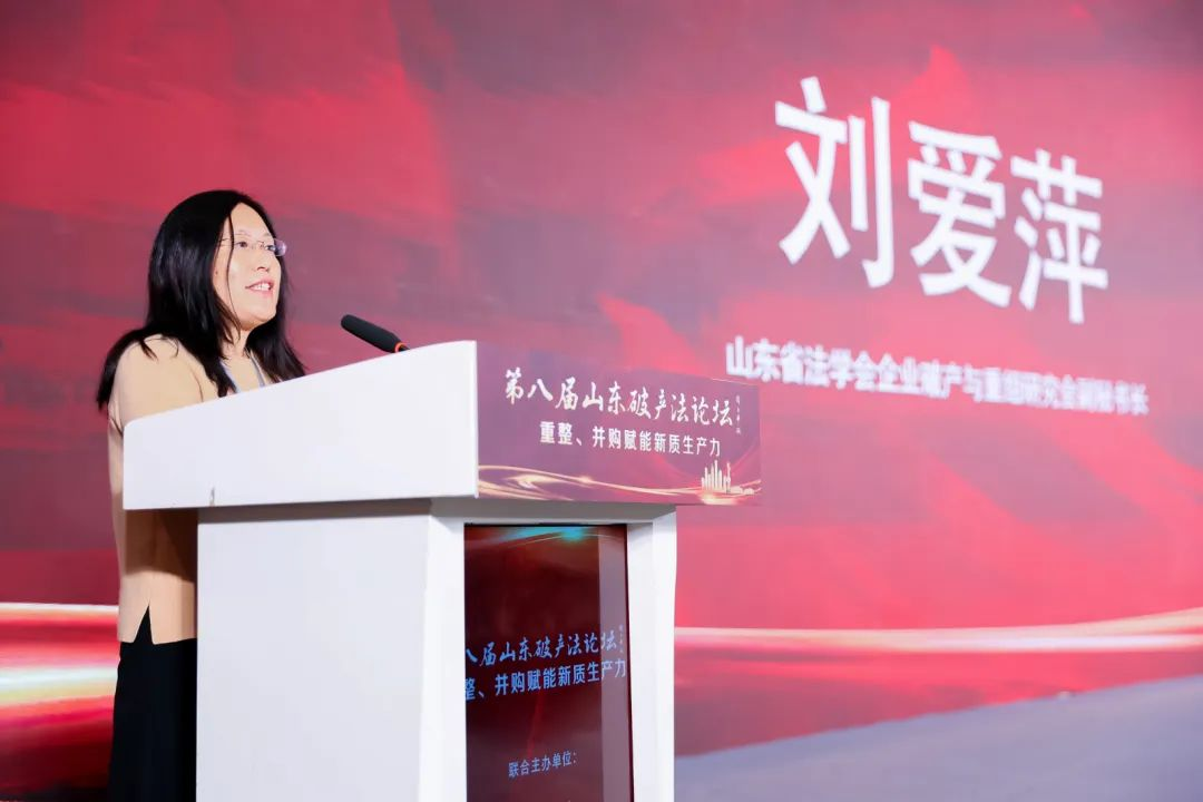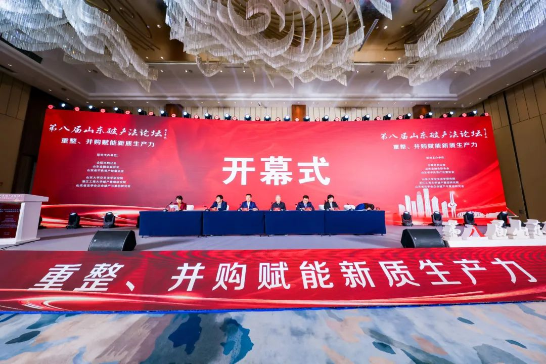 2024年11月10日,第八屆山東破產(chǎn)法論壇在濟南成功舉辦。本屆論壇由全聯(lián)并購公會、山東金融業(yè)聯(lián)合會、山東省不良資產(chǎn)處置協(xié)會、山東大學(xué)交叉法學(xué)研究院、浙江工商大學(xué)破產(chǎn)重組研究院、山東省法學(xué)會企業(yè)破產(chǎn)與重組研究會聯(lián)合主辦。本屆論壇緊緊圍繞“新質(zhì)生產(chǎn)力”的深刻內(nèi)涵,聚焦“重整并購賦能新質(zhì)生產(chǎn)力”這一核心主題展開研討。山東法學(xué)會企業(yè)破產(chǎn)與重組研究會名譽會長、山東省高級人民法院原院長周玉華;全國工商聯(lián)第十三屆常委、全聯(lián)并購公會會長尉立東;山東金融業(yè)聯(lián)合會秘書長何修崟;山東省不良資產(chǎn)處置協(xié)會會長李薇華;中國法學(xué)會世界貿(mào)易組織法研究會副會長兼秘書長、中國人民大學(xué)特聘教授石靜霞;華東政法大學(xué)國際金融法律學(xué)院教授、浙江省高級人民法院原民二庭庭長章恒筑出席開幕式。山東省法學(xué)會企業(yè)破產(chǎn)與重組研究會會長劉平主持開幕式。全國工商聯(lián)第十三屆常委、全聯(lián)并購公會會長尉立東,山東省不良資產(chǎn)處置協(xié)會會長李薇華在開幕式上致辭演講。6位主旨演講嘉賓、28位主題演講嘉賓圍繞各主題、議題,展開了為期一天的深入研討。全聯(lián)并購公會副會長、山東省法學(xué)會企業(yè)破產(chǎn)與重組研究會副會長兼秘書長、山東華信清算重組集團有限公司董事長提瑞婷作閉幕致辭。