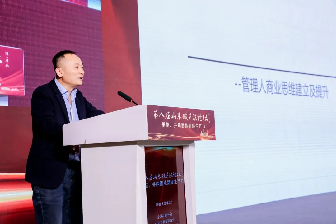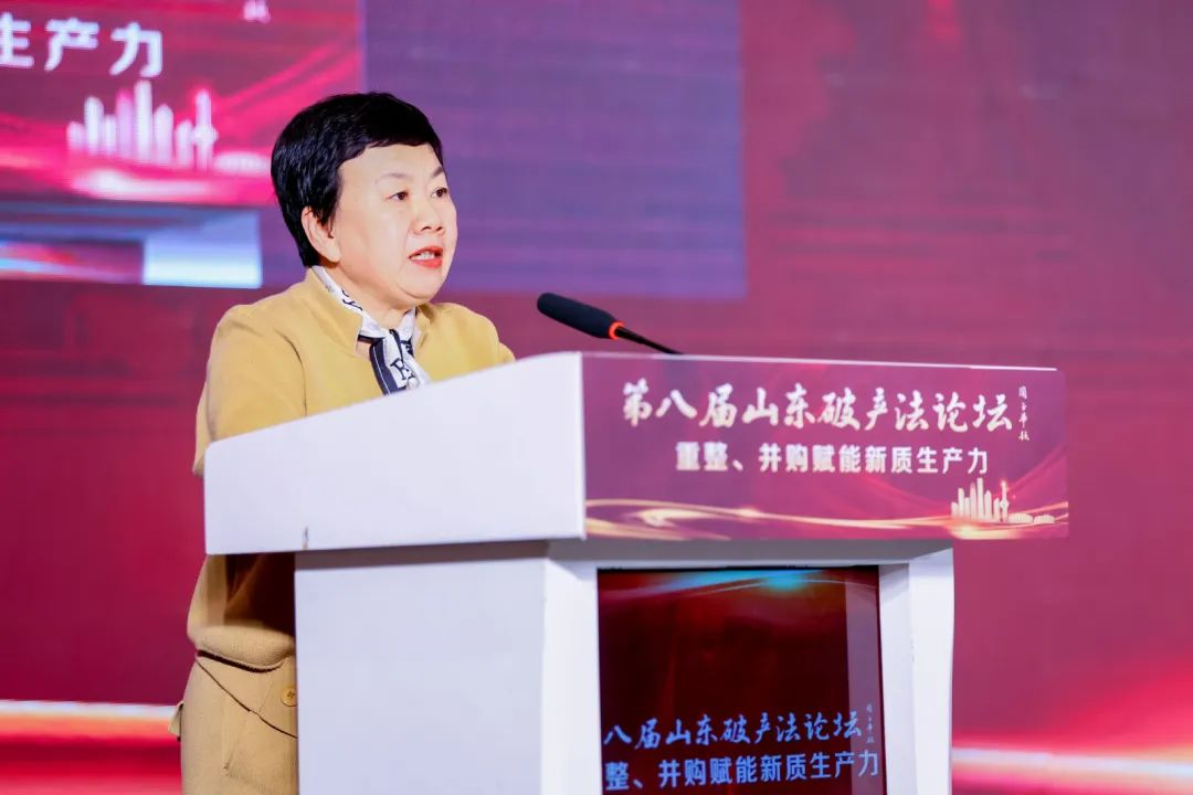 山東省不良資產(chǎn)處置協(xié)會李薇華會長在開幕致辭中對論壇的舉辦致以熱烈的祝賀。李薇華會長表示,黨的二十屆三中全會公報指出,高水平社會主義市場經(jīng)濟體制是中國式現(xiàn)代化的重要保障,要健全因地制宜發(fā)展新質(zhì)生產(chǎn)力的體制機制,發(fā)揮新質(zhì)生產(chǎn)力促進技術(shù)革命性突破、生產(chǎn)要素創(chuàng)新配置以及產(chǎn)業(yè)深度的轉(zhuǎn)型升級的重要作用。除發(fā)現(xiàn)新質(zhì)生產(chǎn)力發(fā)展中的獨特價值之外,我們還應(yīng)對破產(chǎn)法在司法權(quán)運行機制、金融機構(gòu)風(fēng)險處置、國企并購擔(dān)當(dāng)?shù)确矫孢M行前沿探索與深入實踐。破產(chǎn)法的實施,離不開社會各界的交流與合作、共同努力,法院、協(xié)會、企業(yè)、院校、投融資機構(gòu)及從業(yè)者要共同攜手、形成合力,推動破產(chǎn)法制度的完善與實施。