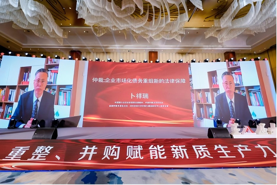 中國銀行業(yè)協(xié)會原首席法律顧問、中國仲裁法學(xué)研究會金融仲裁專委會主任、對外經(jīng)貿(mào)大學(xué)并購與重組研究中心首席專家卜祥瑞的發(fā)言題目為《仲裁:企業(yè)市場化債務(wù)重組新的法律保障》。卜祥瑞主任分析了仲裁在市場化債務(wù)重組中的作用,深入探討了仲裁機制如何為企業(yè)提供更加靈活、高效的爭議解決方案。他還分享了在當(dāng)前經(jīng)濟環(huán)境下,企業(yè)如何利用仲裁手段優(yōu)化債務(wù)結(jié)構(gòu),降低重組成本,從而保障債權(quán)人和債務(wù)人權(quán)益的同時,維護金融市場的穩(wěn)定。最后,他提出在重整并購過程中,仲裁作為一種非訴訟解決爭議的方式,如何與司法程序相輔相成,共同促進企業(yè)債務(wù)重組順利進行的解決思路。