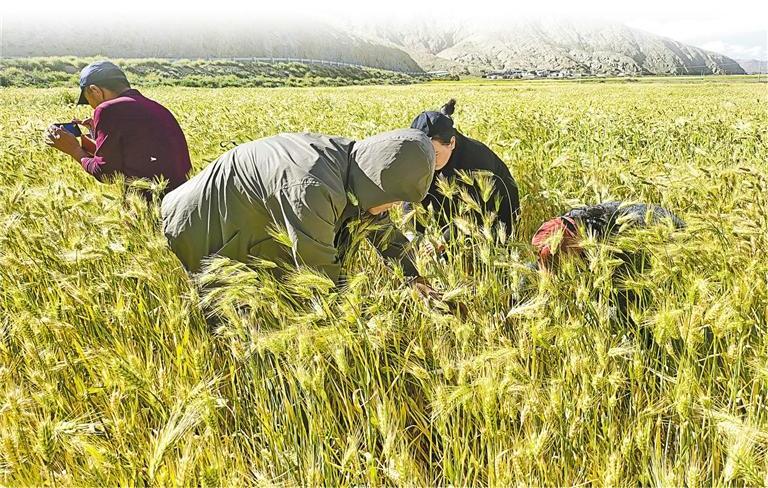 農(nóng)業(yè)專技人員深入山南農(nóng)區(qū)開展糧食測產(chǎn)工作 記者 巴桑旺姆 攝