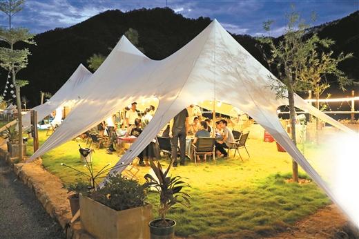 游客在叁袋茶原宿鄉(xiāng)村旅游區(qū)露營(yíng)