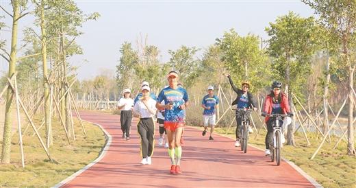 游客在“荷美覃塘 湖美四季”景區(qū)休閑運(yùn)動(dòng)