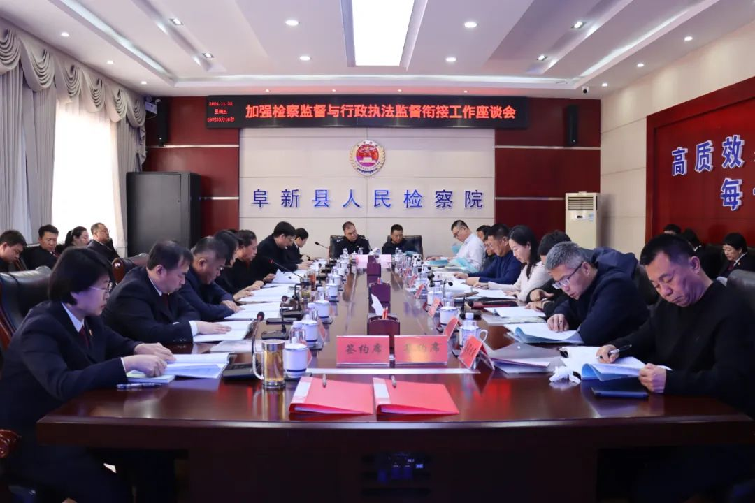 為全面落實(shí)《中共中央關(guān)于加強(qiáng)新時(shí)代檢察機(jī)關(guān)法律監(jiān)督工作的實(shí)施意見》和最高檢《關(guān)于推進(jìn)行刑雙向銜接和行政違法行為監(jiān)督構(gòu)建檢察監(jiān)督與行政執(zhí)法銜接制度的意見》,有效推動檢察監(jiān)督與行政執(zhí)法監(jiān)督的銜接配合,助推法治政府建設(shè),11月22日,遼寧省阜新縣人民檢察院與阜新縣司法局聯(lián)合召開了加強(qiáng)檢察監(jiān)督與行政執(zhí)法監(jiān)督銜接工作座談會??h委常委、副縣長張文遠(yuǎn),縣委常委、政法委書記王立靖參加會議并講話??h公安局、縣司法局、縣工業(yè)和信息化局、縣人力資源和社會保障局、縣住房和城鄉(xiāng)建設(shè)局、縣水利局、縣應(yīng)急管理局、縣林業(yè)和草原局等12家行政單位參加了座談會。市人民檢察院、縣紀(jì)委監(jiān)委、縣人民法院派員參加了會議。