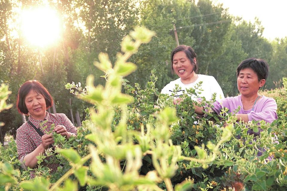 新絳縣澤掌鎮(zhèn)農民在采摘金銀花
