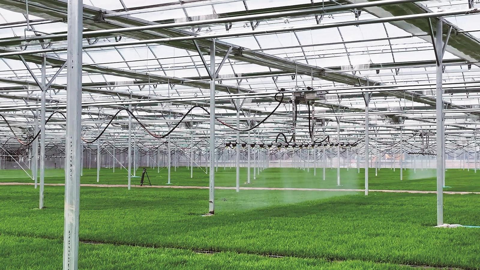 雙遼市樂稻小鎮(zhèn)“育秧工廠”自動化噴淋系統(tǒng)(資料圖片)張妍 攝
