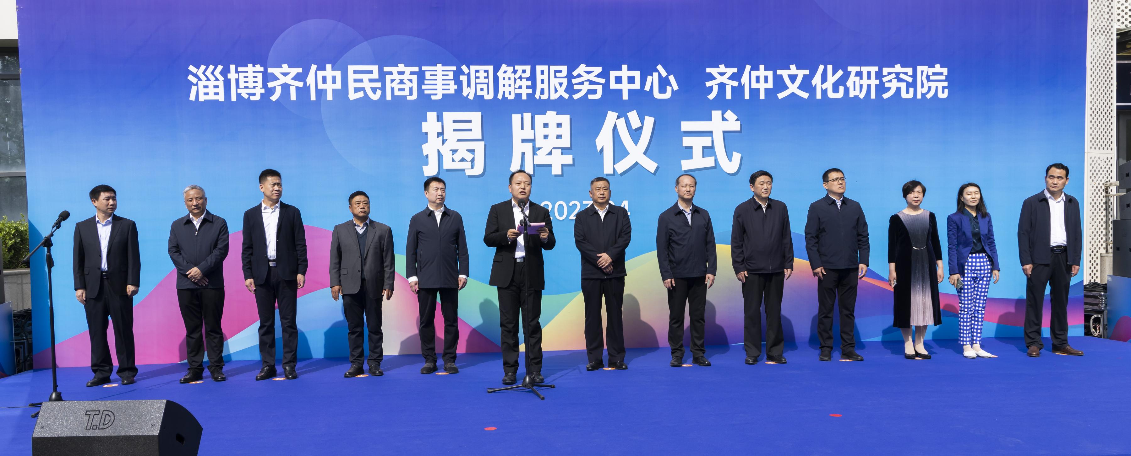 2023年4月18日,淄博仲裁委員會舉行淄博齊仲民商事調解服務中心暨齊仲文化研究院揭牌儀式