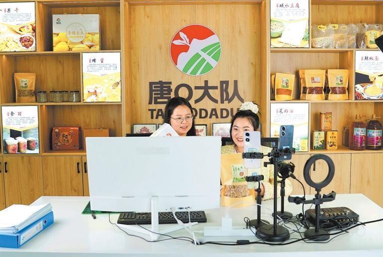 合水縣西華池鎮(zhèn)唐旗村“唐Q大隊”助農(nóng)工作室通過網(wǎng)絡(luò)直播推介銷售農(nóng)特產(chǎn)品。通訊員 陸洋
