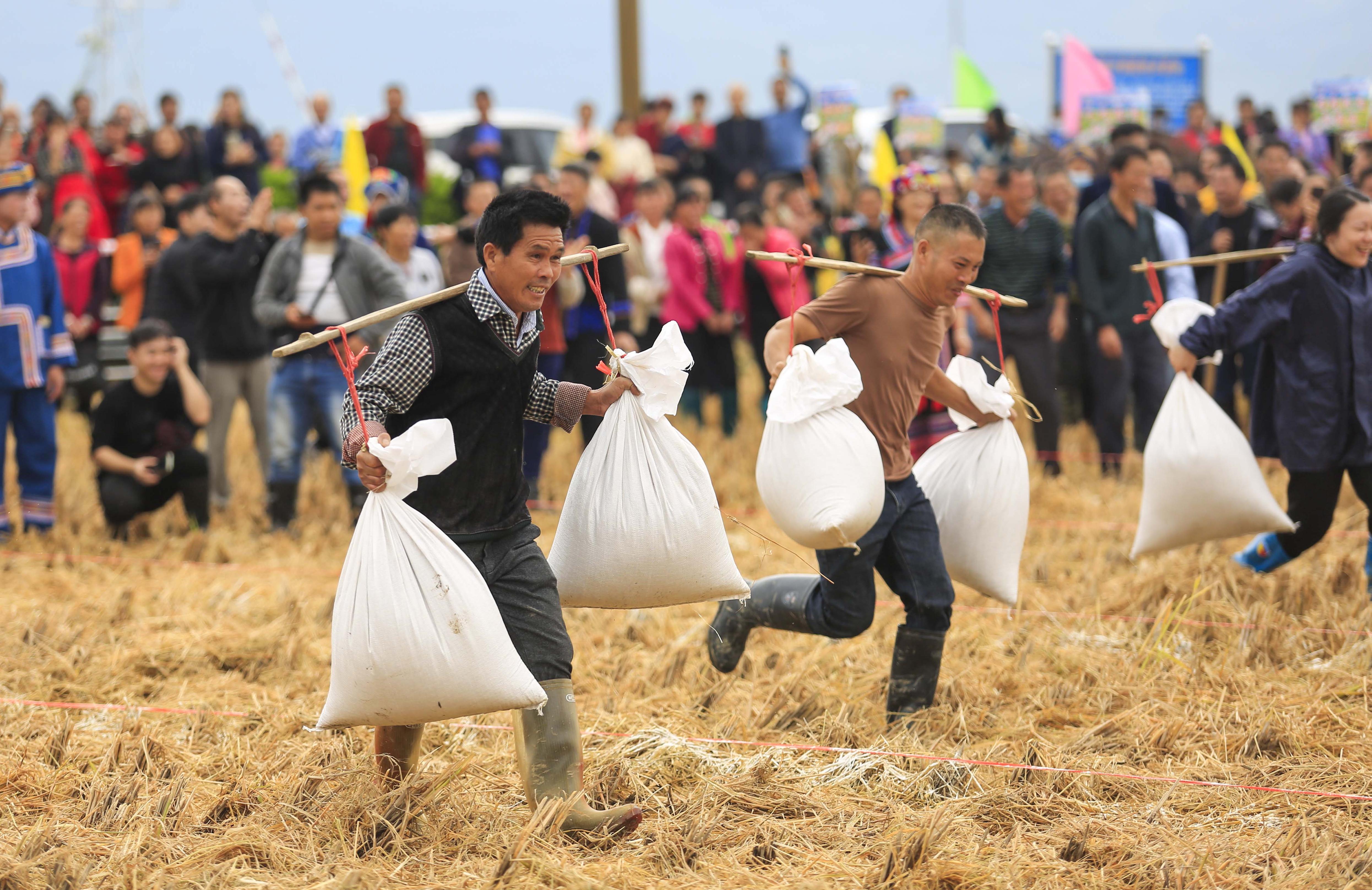 古砦仫佬族鄉(xiāng)大戶村舉辦豐收節(jié)挑擔(dān)子比賽 鄧克軼 攝
