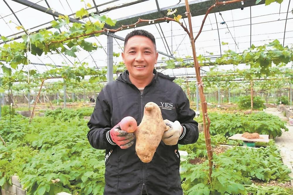 陳壇生在葡萄園里套種收獲的“土豆王”