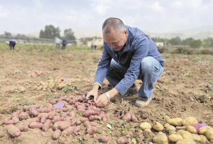 王艦觀察新長(zhǎng)出來的馬鈴薯