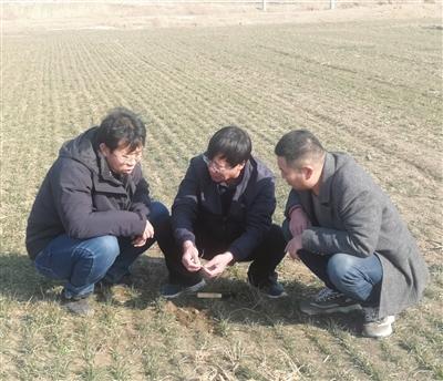 寶坻區(qū)農(nóng)業(yè)發(fā)展服務(wù)中心專家下田了解土壤墑情和小麥苗情(資料片)