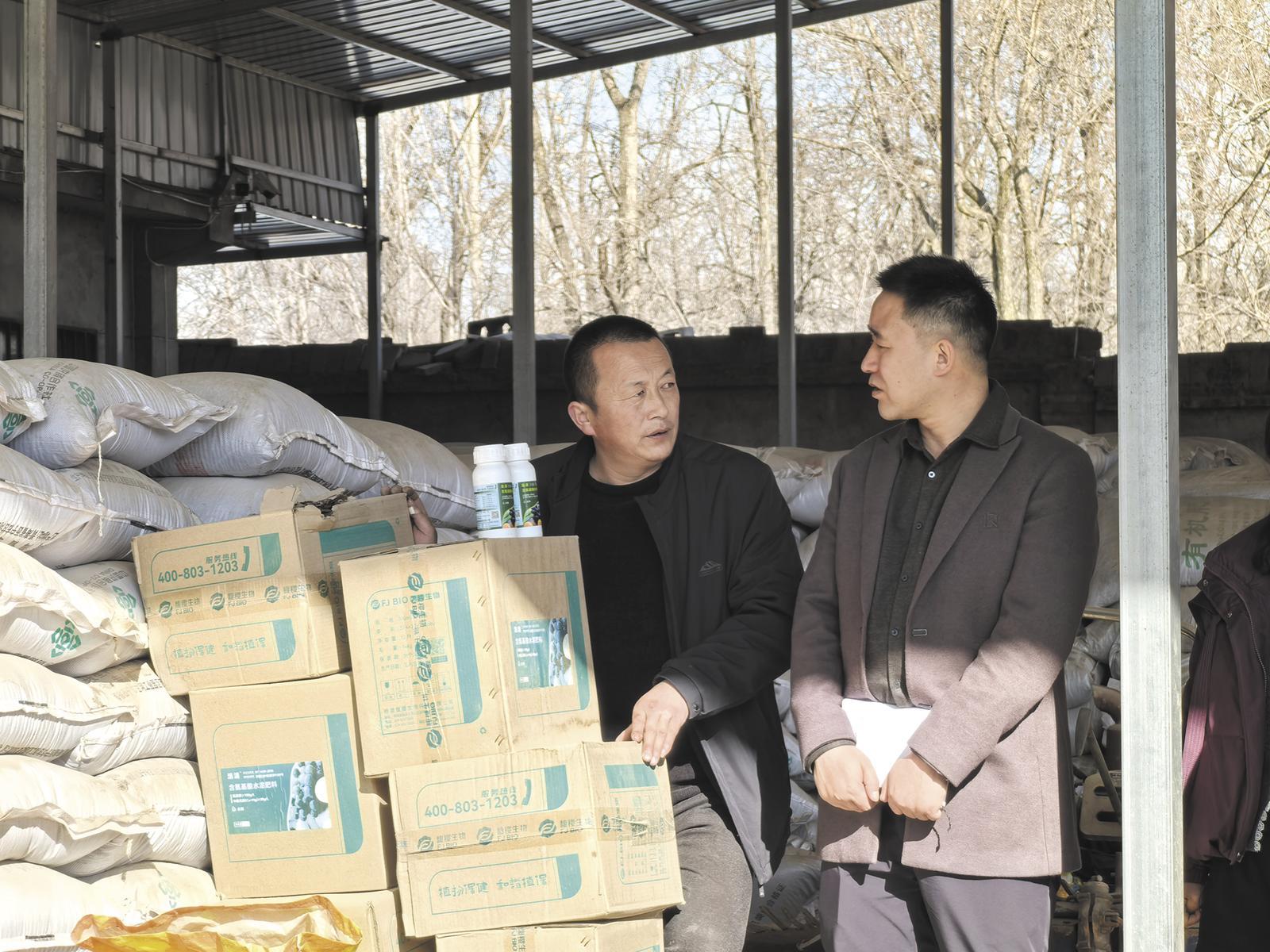 2月17日,在青海省海東市民和回族土族自治縣中川鄉(xiāng)光明村股份經(jīng)濟(jì)合作社內(nèi),復(fù)合肥、二銨、尿素等各類化肥整齊地碼放在庫(kù)房,院子里停放著幾輛青飼料收獲機(jī),中川鄉(xiāng)黨委副書記馬玉明翻開工作筆記,一邊宣講著強(qiáng)農(nóng)惠農(nóng)富農(nóng)政策,一邊和群眾拉家常。
