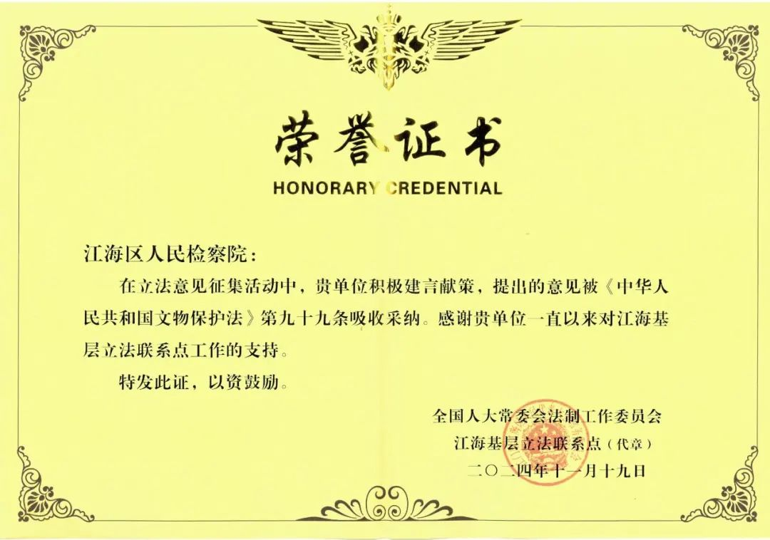 助力“法務(wù)集聚區(qū)”建設(shè),落實(shí)“誰(shuí)執(zhí)法,誰(shuí)普法”責(zé)任制,開展法律“六進(jìn)”活動(dòng)60余次。積極履行立法聯(lián)系單位職責(zé),對(duì)4部法律修訂草案提出立法建議,其中對(duì)文物保護(hù)法提出的意見被全國(guó)人大常委會(huì)法制工作委員會(huì)吸收采納。