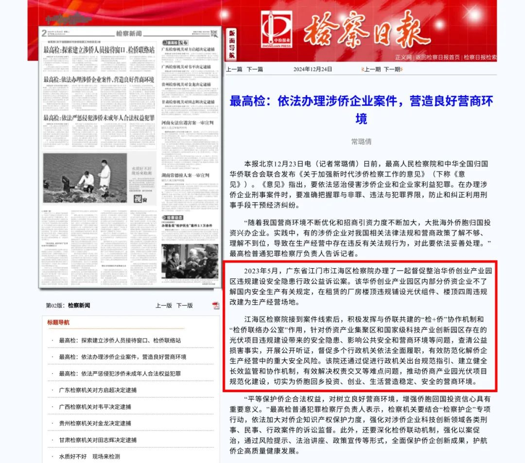 “督促整治‘僑夢(mèng)苑’產(chǎn)業(yè)園區(qū)違規(guī)建設(shè)安全隱患行政公益訴訟案”被《檢察日?qǐng)?bào)》報(bào)道
