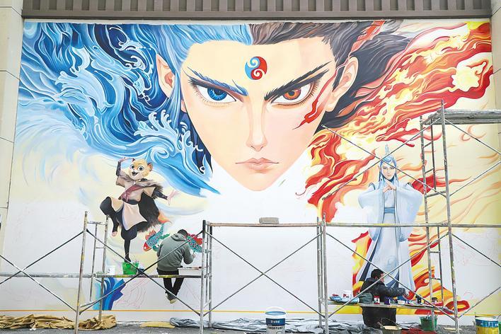 龔庭杰已在墻繪行業(yè)摸爬滾打9年。“我們這一代是看迪士尼動畫長大的,對唐老鴨、米老鼠、獅子王等都耳熟能詳?!碧岬剿鸨槿堑哪倪笁L,龔庭杰的熱血一下“燃”了起來:“哪吒、悟空等國漫的崛起,讓中國文化和中國IP掀起前所未有的全球旋風,這是一種無法描述的自豪感!”