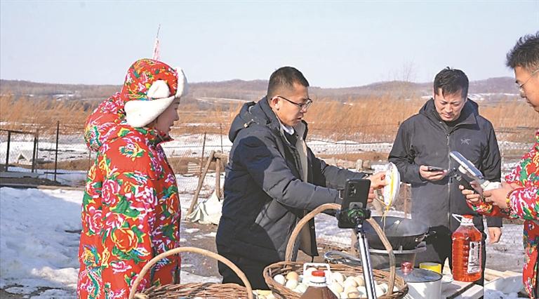 “各位老鐵們,看看這雞蛋黃,招人稀罕不,這都是村民自家小笨雞下的……”3月12日,在黑龍江省饒河縣大通河鄉(xiāng)鎮(zhèn)江村村民劉偉軍家的小院里,一群新農(nóng)人正在手機屏幕前介紹著當(dāng)?shù)靥厣r(nóng)產(chǎn)品,一旁的劉偉軍一邊看著銷售訂單的不斷刷屏,一邊高興得合不攏嘴。