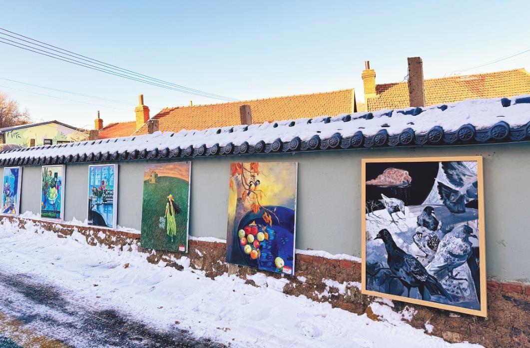 早春時節(jié),記者走進色彩斑斕的齊家溝。此時,地上的雪還沒完全融化。院墻上的色彩,大多出自畫家叢丹和高原麗夫婦之手。2000年,夫妻二人來到齊家溝落成了“山居畫室”,從此便告別都市生活,常居在這個寧靜、充滿野趣的小村落靜心創(chuàng)作。此后,省內(nèi)外陸續(xù)有十余名知名畫家來此居住,漸漸地,齊家溝成了遠近聞名的“畫家村”。