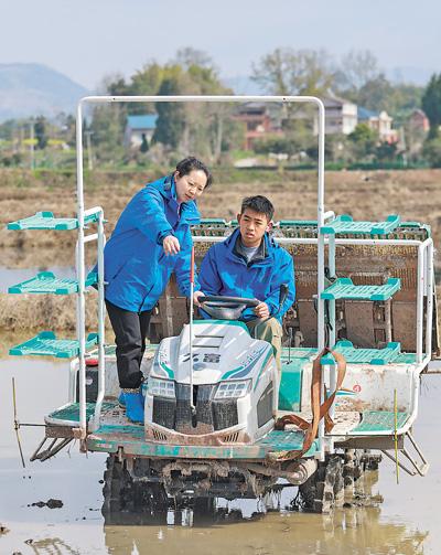 春分時節(jié),重慶市梁平區(qū)的種糧大戶張強(qiáng)駕駛插秧機(jī)在田間穿梭,所到之處,嫩綠的秧苗整齊插入田里。“去年在‘田間學(xué)?!瘜W(xué)的本事,讓我省了不少錢!”他拍了拍沾著泥點的褲腿,黝黑的臉上綻開笑容。
