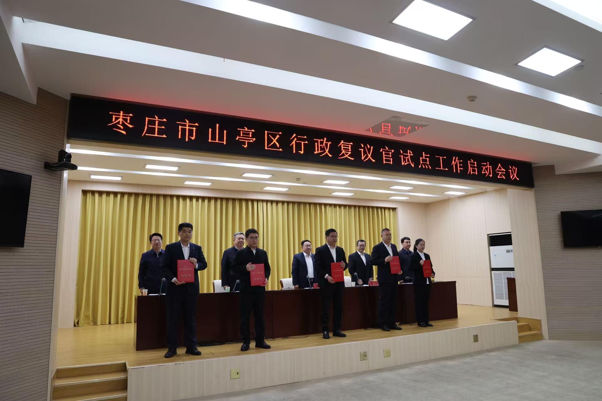 4月1日,山東省棗莊市山亭區(qū)召開行政復(fù)議官試點工作啟動會議并舉行行政復(fù)議官任命儀式,標志著政府任命行政復(fù)議官制度的試點工作順利啟動。這也是山東省內(nèi)率先開展行政復(fù)議官制度改革試點的地區(qū),為全省行政復(fù)議隊伍專業(yè)化、職業(yè)化建設(shè)按下“快進鍵”。