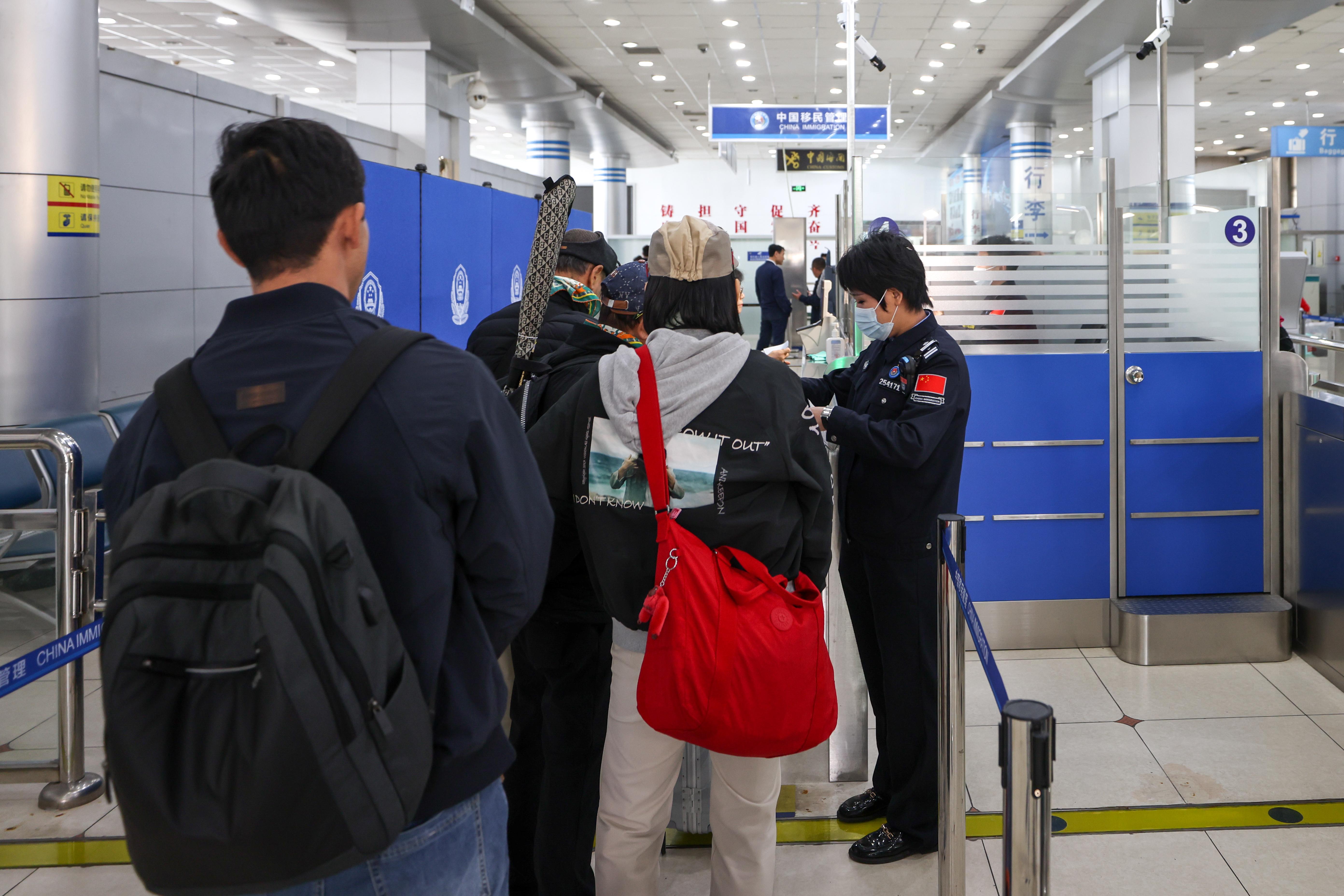 “為全力做好旅行團通關保障工作,我們邊檢機關主動靠前服務,第一時間與口岸聯(lián)檢單位、船方及旅行社進行通聯(lián),提前掌握團隊人員信息,協(xié)調旅行社通過整團分組、多批次、不間斷的方式,組織旅行團成員分批分時抵達口岸通關現(xiàn)場,確??诎吨刃蚓弧M瑫r增派前臺查驗警力,開足查驗通道,選派精通韓語的民警靠前服務,解決韓國旅客語言溝通不暢、地理位置不熟、政策法規(guī)不清等難題,縮短旅客通關時長,確保旅客高效快捷通關?!笔瘝u邊檢站執(zhí)勤一隊教導員慕楠說。