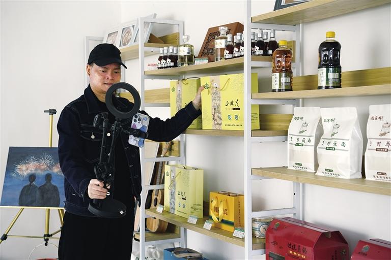 包頭市固陽(yáng)縣金山鎮(zhèn)青年致富能手楊汶興線(xiàn)上銷(xiāo)售當(dāng)?shù)靥厣r(nóng)產(chǎn)品。彭海霞 攝