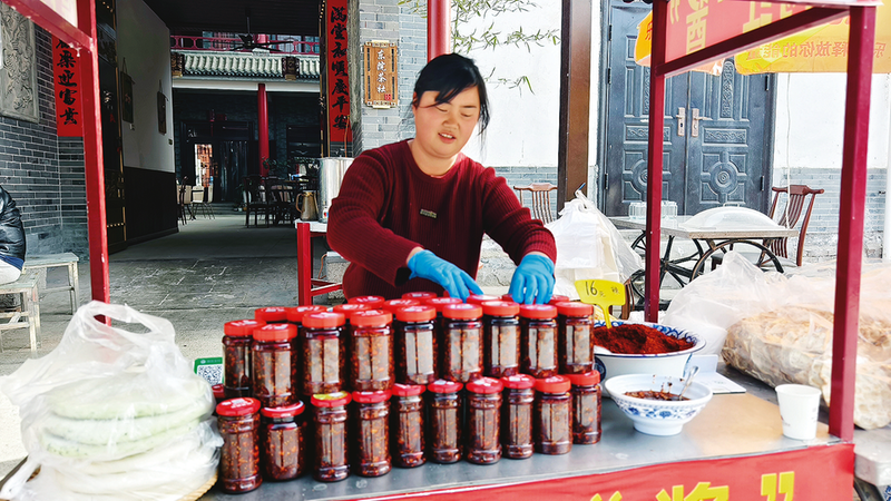 “現(xiàn)在真是大變樣!”鄭翠擦著餐桌感慨道,“我一個普通農(nóng)民,本是給孩子做的辣醬,竟然得到這么多人的認(rèn)可,這讓我非常開心?!?023年,村上免費(fèi)組織村民學(xué)習(xí)抖音短視頻拍攝,岳綿綿親自幫助她。鏡頭里既有辣子鍋盔的制作過程,也有青訓(xùn)班舊址的紅色故事。如今這家不足200平方米的農(nóng)家樂,自從“觸網(wǎng)”后,本著薄利多銷的原則,依靠品質(zhì)和服務(wù),游客翻了一番,自制辣醬年銷售額常常供不應(yīng)求。