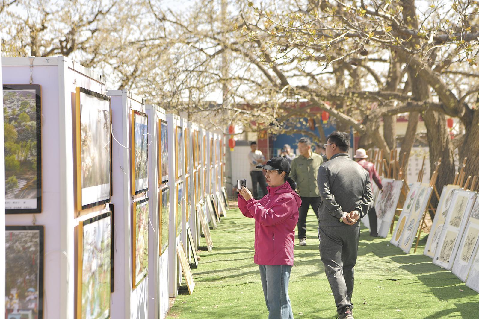 今年的橋頭村很不一樣,不僅增設了停車場,多了很多“新”攤位,進入梨園的道路兩旁還增加了“哪吒鬧春”國潮打卡彩繪墻。游客一路賞梨花、拍照,就來到了梨園。精心裝扮后的梨樹古色古香,樹下設置了賞花品茗休憩點,坐滿了欣賞表演的游客,還有“梨園春色”主題攝影藝術展,供游客賞梨花之美、品人文之韻。