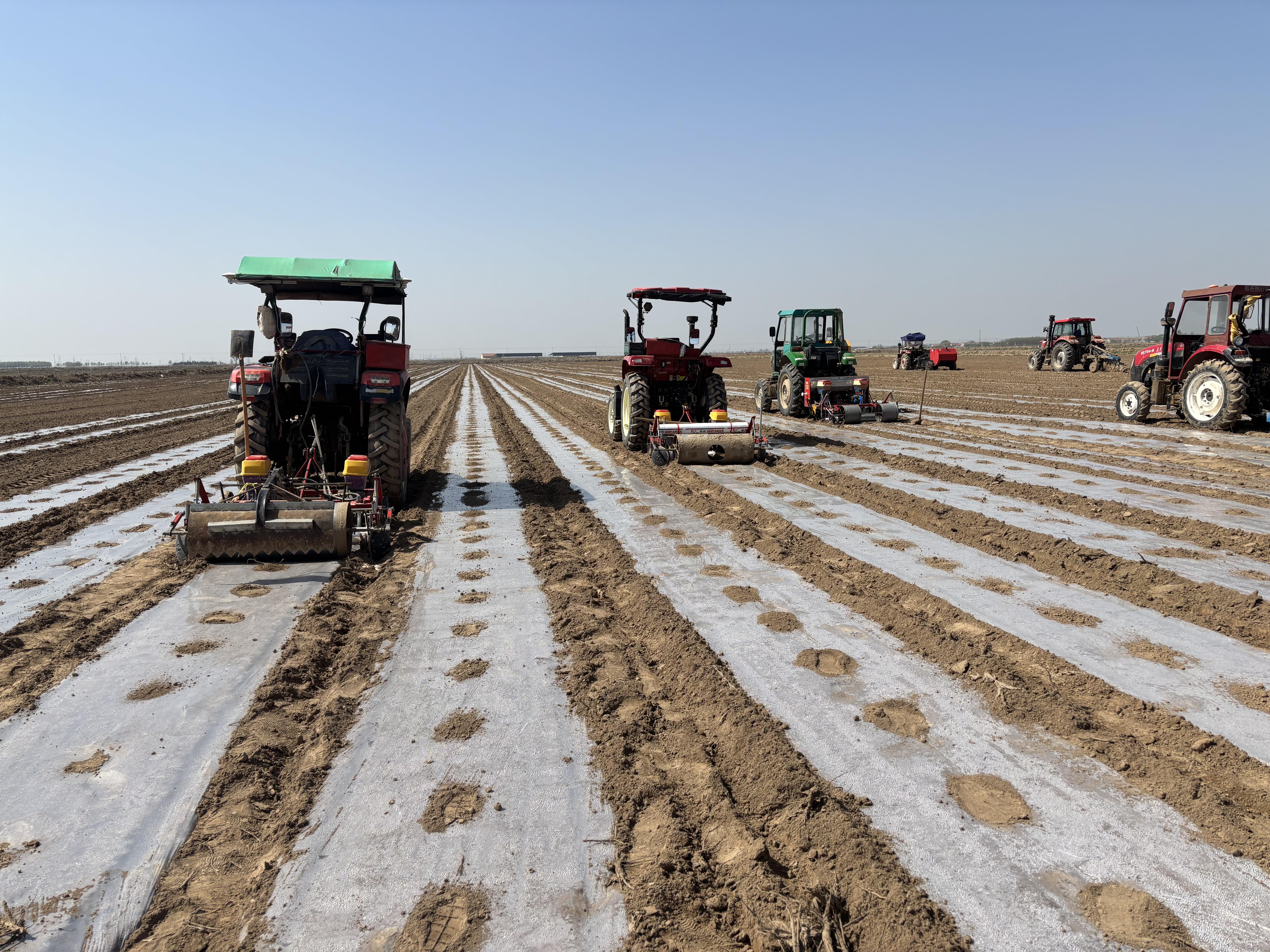 “黃河三角洲鹽堿地種棉需蓋地膜,傳統(tǒng)先播后蓋膜,待棉苗出土后人工放苗,不僅時間緊迫,且人工短缺嚴重制約機械化發(fā)展。”山東省農(nóng)業(yè)專家顧問團棉花分團團長董合忠介紹,新設備將播種、蓋膜、打孔三合一,優(yōu)化流程,從播種環(huán)節(jié)為棉苗生長預留空間,為全程機械化作業(yè)奠定堅實基礎。