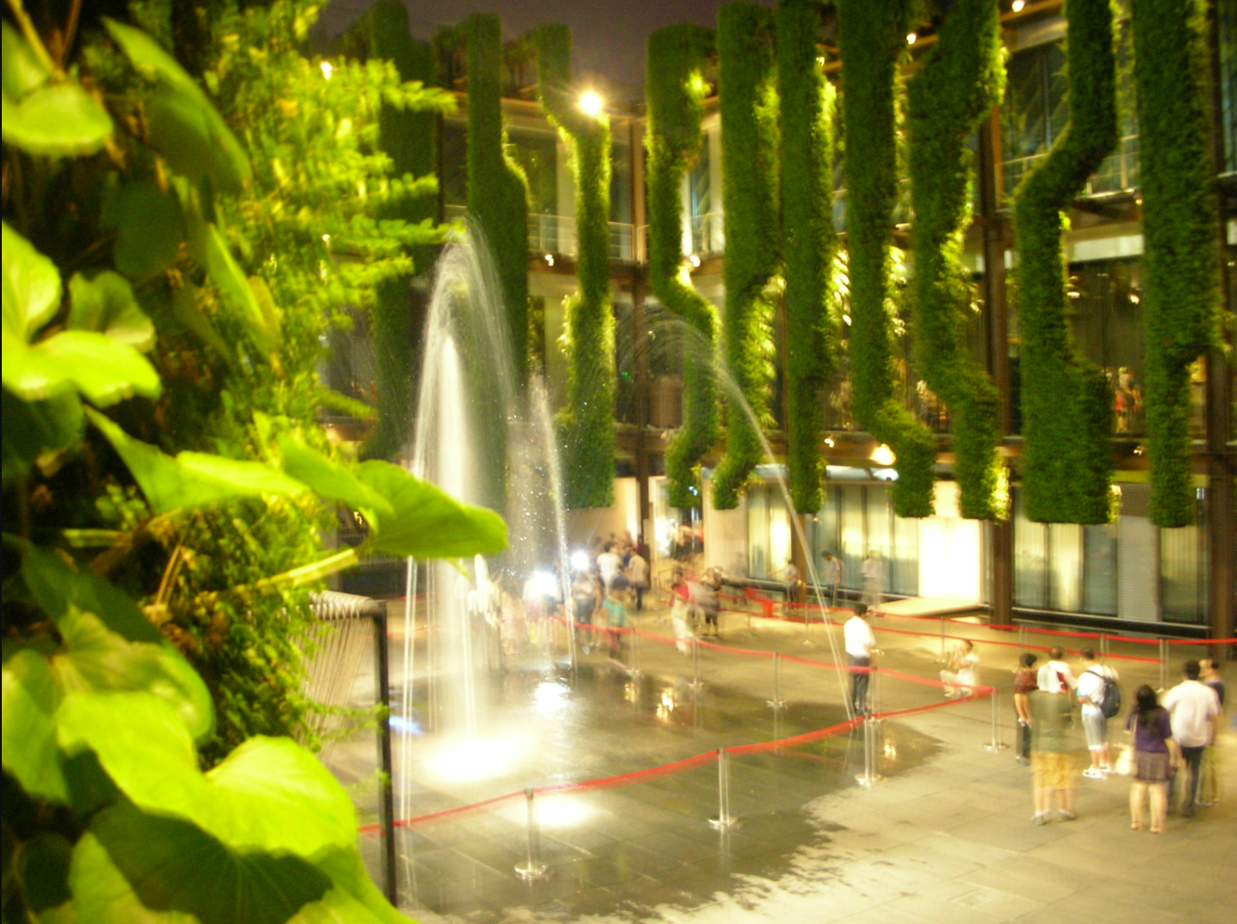 法國館遠觀像是罩上了慈禧太后的網(wǎng)狀珍珠披肩。大堂呈垂直園林設計,生機盎然。向上可見凹窗,廚師在內(nèi)操持,同步影像幽默感性。驀然回首,不諧卻在燈火闌珊處。一墻優(yōu)雅的對過,豎屏赫然閃現(xiàn)只有中文標識的紅字警示:“嚴禁在場內(nèi)吃東西 坐下和隨地大小便”。字幕滾動播放,數(shù)步一現(xiàn),著實煞風景。