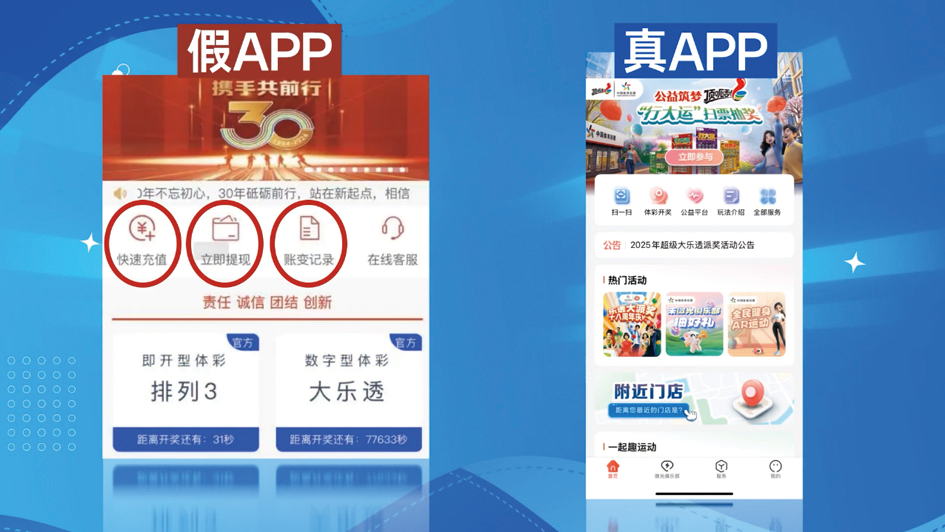 此外,不法分子通過(guò)偽造虛假網(wǎng)站、冒充官方網(wǎng)站等方式,擅自開(kāi)展非法網(wǎng)絡(luò)彩票售賣,也成為新的詐騙手段。來(lái)自江蘇宿遷的周某在刷抖音時(shí),看到有人稱買彩票很準(zhǔn),私信添加微信后,對(duì)方誘導(dǎo)其掃碼下載APP。APP內(nèi)自稱負(fù)責(zé)人的人,發(fā)紅包誘導(dǎo)周某繳納保障金,隨后又推送“榮譽(yù)導(dǎo)師”,以各種伎倆讓周某轉(zhuǎn)賬,最終周某損失10634元。