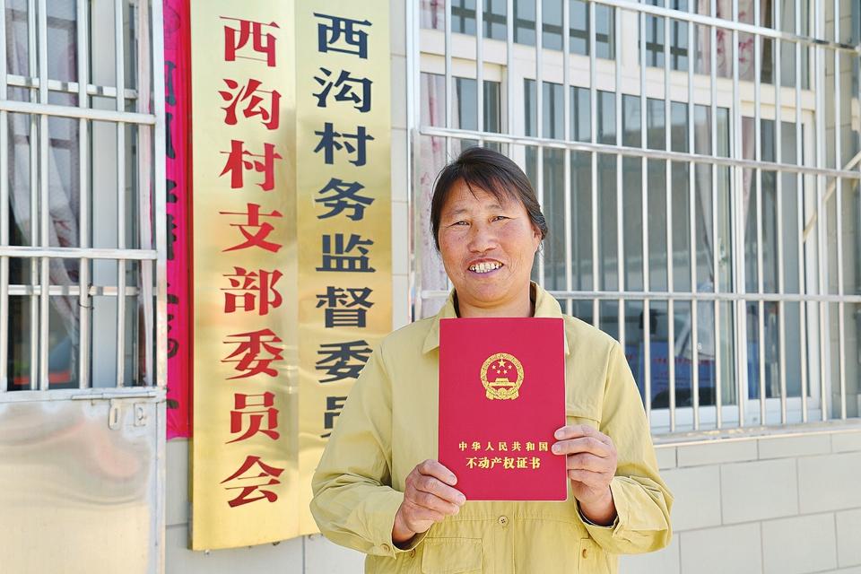首批拿到林權不動產(chǎn)權證書的龍泉鎮(zhèn)西溝村林農王安青喜笑顏開。