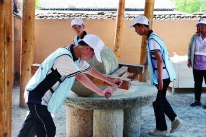 神玉村的名氣越來越響,許多研學(xué)團(tuán)也紛至沓來。記者到訪時,180多名黃龍縣初級中學(xué)初二的學(xué)生正在神玉村開展研學(xué)活動,他們動手磨豆?jié){、包餛飩、生火做飯,感悟“一粥一飯,當(dāng)思來之不易”的道理。