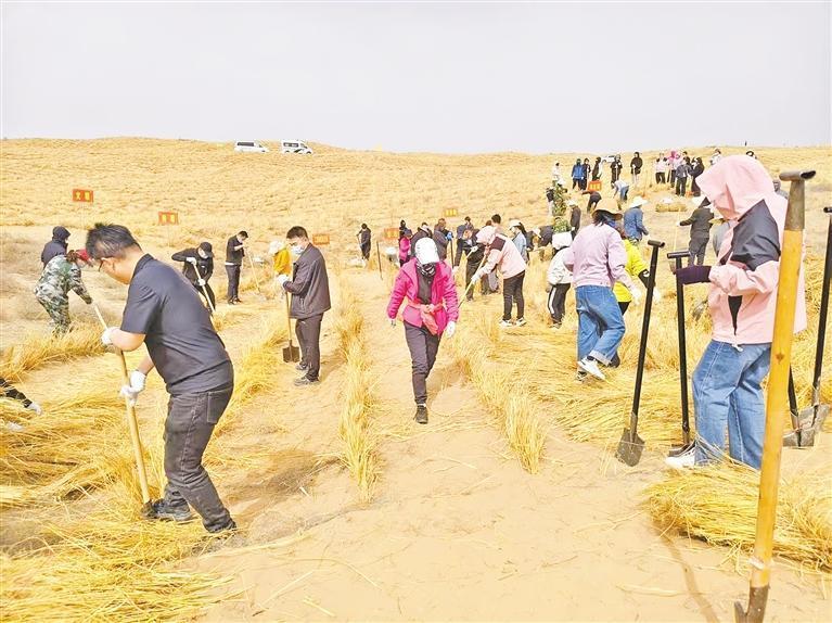協(xié)同治理的突破,激活了多元力量的參與。平羅縣依托林長制搭建的協(xié)同平臺(tái),將各級(jí)林長責(zé)任區(qū)與治沙任務(wù)精準(zhǔn)對(duì)接,通過建立黨建帶林建工作機(jī)制,引進(jìn)社會(huì)資本參與后期養(yǎng)護(hù)管理。“4月25日,金融系統(tǒng)的研學(xué)團(tuán)隊(duì)來這和我們一起扎草方格、種樹苗,大家干得熱火朝天!此外,青年志愿者隊(duì)伍也絡(luò)繹不絕……”王建保說,“林長制就像一根‘指揮棒’,將各方力量擰成一股繩,讓治沙從‘單打獨(dú)斗’升級(jí)為全社會(huì)協(xié)同作戰(zhàn)?!?/p>