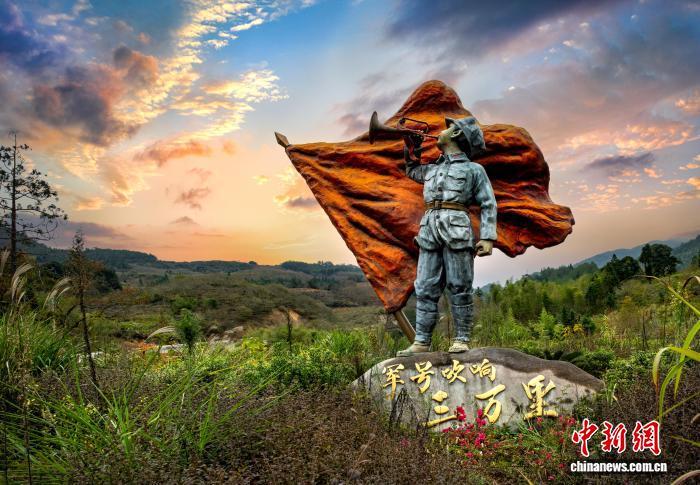 三萬里村的“軍號吹響三萬里”雕塑。(屏南縣路下鄉(xiāng)人民政府供圖)