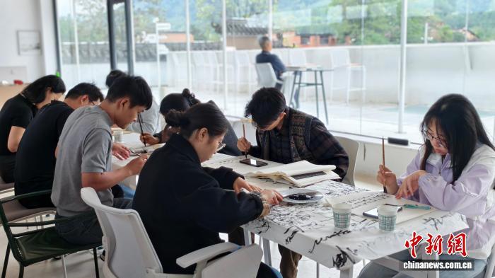 10月7日,秦托邦青年社區(qū)成員正在進(jìn)行書法體驗(yàn)。受訪者供圖