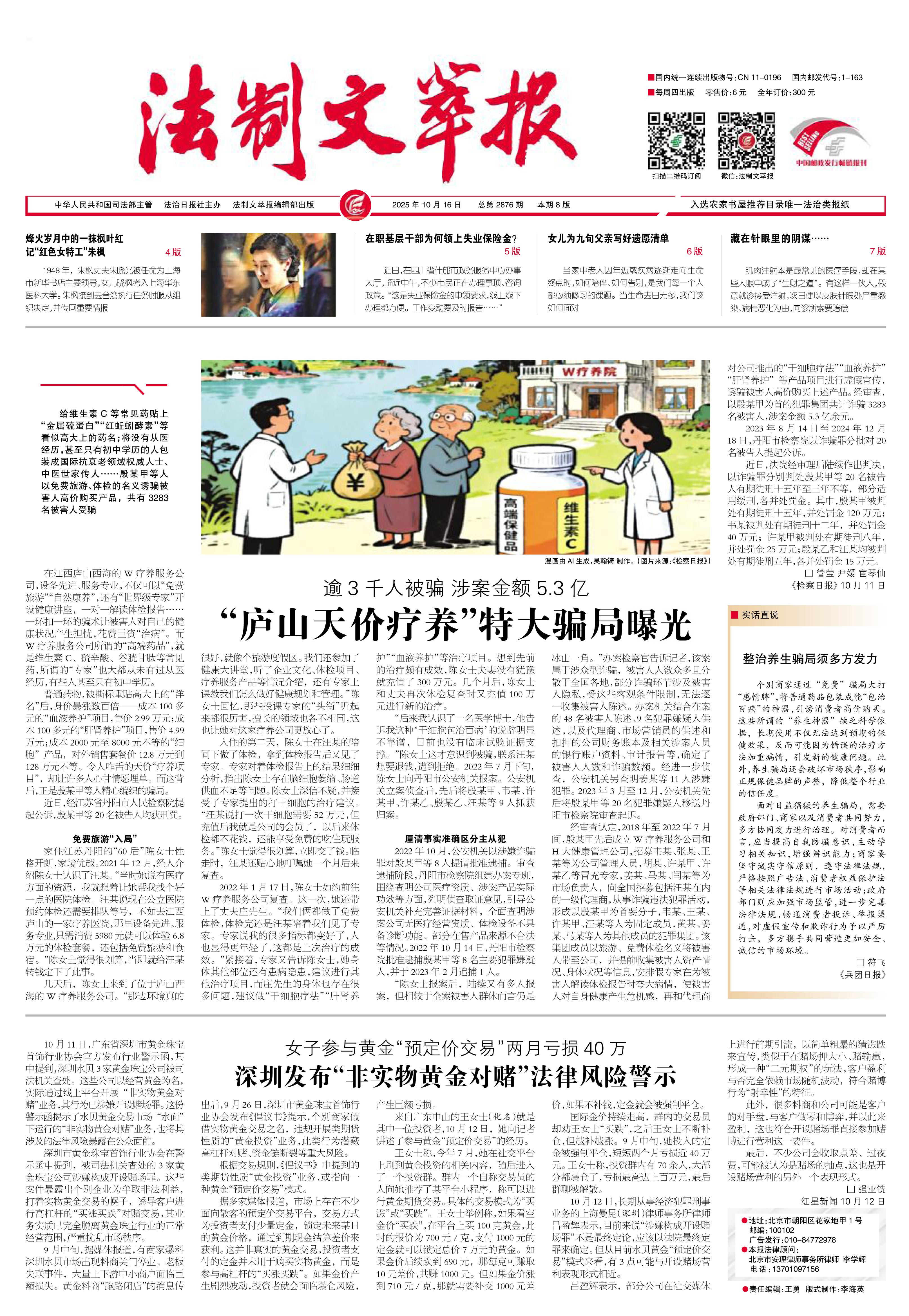 2025年10月16日《法制文萃報》總第2876期1版