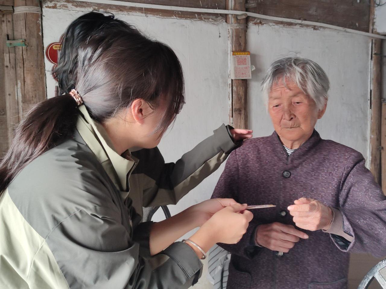 志愿者為花鳥村老人測(cè)量血壓。通訊員 胡子祎 攝