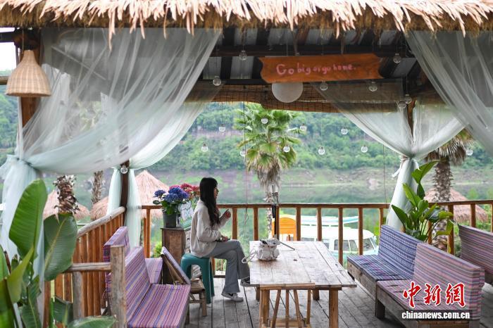 4月13日,走進重慶石柱橋頭鎮(zhèn)長沙村,藤子溝水庫波光粼粼,湖畔咖啡館飄香。遠處,一排排精品民宿立于湖光山色間,游客不時駐足,欣賞濕地公園美景。如今的長沙村,一棟棟老屋被點亮,一個個夢想被點燃,逐步形成了“藝術(shù)一條街”。
